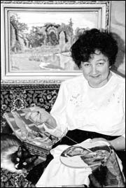 Неземными казались и представленные на встрече картины Геннадия Стрекаловского «Светлая Русь». Вдохновенные лица святых, храмы, русские березы. Работы Стрекаловского выставлялись в Новосибирской картинной галерее. Трудно поверить, что создатель этой действительно светлой, тонкой живописи