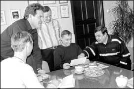 Не только журналисты слушали с вниманием рассказы Евгения о сборной, но и он — их рассказы о работе журналистов. Фото Сергея ПЕРМИНАЕстественно, в первую очередь журналистов интересовал созданный в прошлом году Фонд Евгения Подгорного. Олимпийский чемпион сообщил нам последние новости о работе своего фонда, помогающего развитию детской спортивной гимнастики.