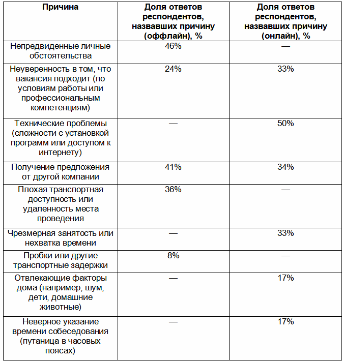 Причины, по которым новосибирцы переносили или отменяли онлайн и оффлайн-собеседования