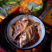 Натертый сыр, мелко нарезанную ветчину, пиво, сметану и приправы смешать и проварить. Добавить желток. Положить рыбное филе в кастрюльку, залить полученным соусом, посыпать сухарями, сверху положить масло и запечь.