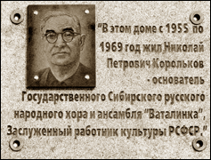 Вчера в Дзержинском районе открыта мемориальная доска заслуженному работнику культуры России, основателю Сибирского народного хора Николаю Петровичу Королькову.