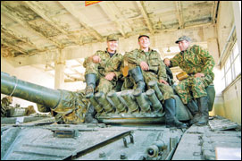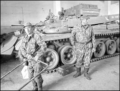 Это боевые танки, законсервированные до особого сигнала, рассказывает майор. Они не участвуют в учебных боях, как девять наших остальных танков, которые отправились сейчас в Юргу на учения. У них особая задача быть в прекрасной боевой форме и ждать своего часа.
