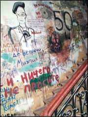В «нехорошую квартиру» поднимаюсь по прохладной лестнице мимо высоченных, обшарпанных дверей, как сквозь строй откровений и признаний. Если поскрести стены, то там их наслоения за десятилетия. «Если есть тьма, должен быть свет». «У каждого есть свой трамвай, главное, чтобы он тебя не переехал», Аннушка.