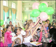 От имени юбиляра шарики раздавала президент Клуба авторской куклы Елена Ковалюк. Фото автора |