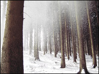 А мороз — поклонник затишья. И особая, кафедральная, тишина стоит тогда в сосновых боринах, а в накаленных стужею перелесках — звучное чиканье сучьев, похожее на треск походного костра. После кратких оттепелей воцаряется изморозь. Еще нежнее и тоньше она чеканит серебряную роспись березняков, зеленый сумрак пихтовых урманов, еще рельефнее рисует готическую устремленность еловых застав и богатырскую плечистость кедровников.