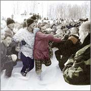 Наибольшее внимание собравшихся на Камышенском плато привлекли молодецкие игрища и забавы - не каждый день можно побороться, попихаться, подраться не в театрализованном виде, а в самом конкретном, а после побрататься, обняться и попросить прощения, как это делали наши предки в старину. Главное правило - не бить в лицо, а только в грудь. Можно, конечно, и завалить противника. Кто правила нарушал, того «рефери» наказывал ударом нагайки по спине.