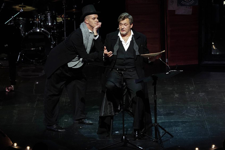 За три часа, столько длился спектакль о жизни знаменитого русского шансонье, Александр Домогаров исполнил 15 его песен – «Мадам, уже падают листья», «Желтый ангел», «Маленькая балерина», «Танго Магнолия» и другие. Народному артисту России аккомпанировал джазовый квартет Евгения Борца. За пластику, мимику и жесты отвечал актер Андрей Кислицин.