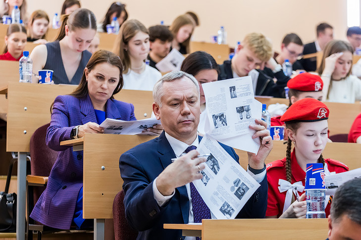 Губернатор Андрей Травников вместе с участниками регионального проекта «Герои НовоСибири» также ответил на вопросы Диктанта.