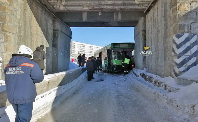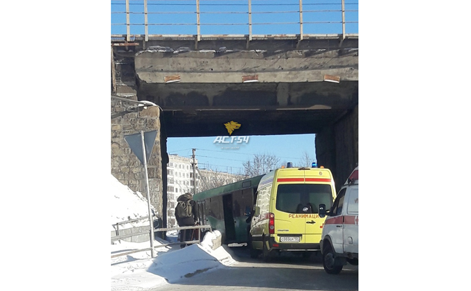 В стену путепровода, отделяющего Нижнюю Ельцовку от остального Новосибирска, врезался автобус МАЗ маршрута №65.