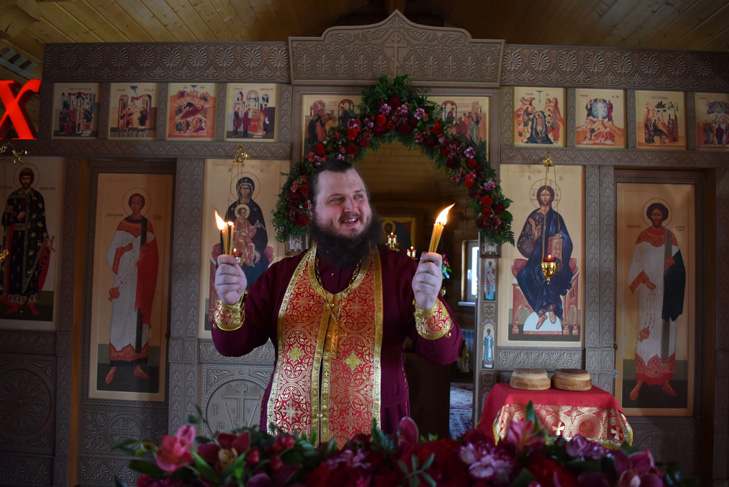 К чуду из Иерусалима прикоснулись также прихожане Георгиевского храма Новосибирска. Перед началом вечернего пасхального богослужения настоятель прихода иерей Александр Сахненко сообщил собравшимся на общую молитву верующим радостную новость и раздал прихожанам свечи с Благодатным огнем.