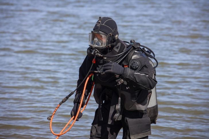 Как рассказали водолазы муниципальной аварийно-спасательной службы, видимость под водой составляет всего полметра – не дальше вытянутой руки. С берегом водолаз связывается помощью 40-метрового кабеля. На обследование акватории пляжа уходит три-четыре часа. Помогает спасателям ТНПА – телеуправляемый необитаемый подводный аппарат.
