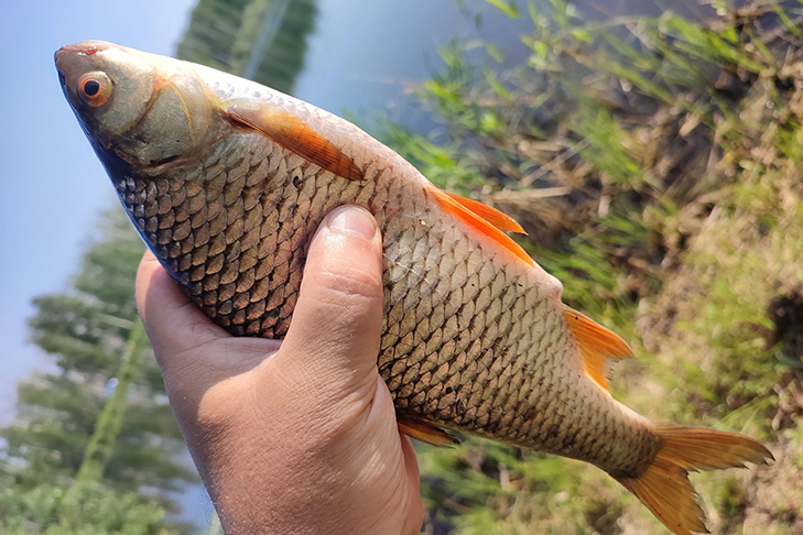 —Карась там немного больше среднего, — продолжает Бычков. — но местный люд часто использует сети, и если бы не этот факт, то рыбы там было гораздо больше, и она была бы крупнее в разы. Причём для сазана и карпа кормовая база здесь хорошая, способствует выгону водорослей и всего того, что к ним прилипает.