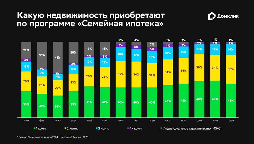 Высокий спрос на «Семейную ипотеку» отмечается и сегодня: по данным аналитиков Домклик, в последние месяцы ее доля в общем объеме выдач Сбера находится на рекордном уровне – около 65%.