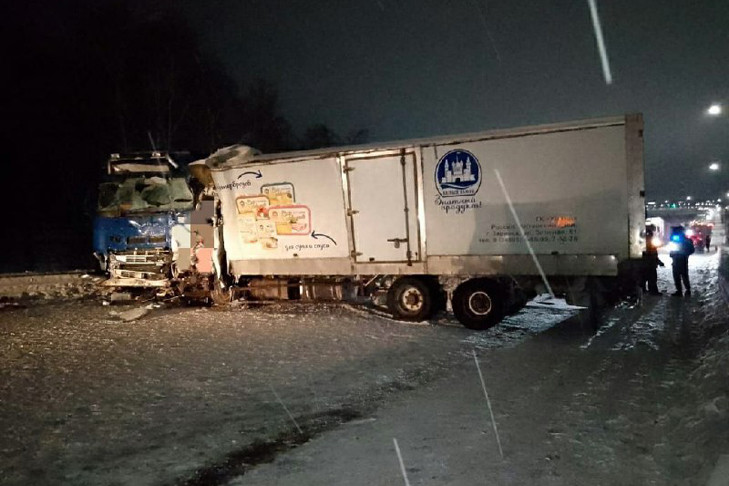 Трагедия произошла поздним вечером 9 февраля в Искитимском районе Новосибирской области. По информации ГАИ, водитель грузовик «Хино Рейнджер» выехал на полосу встречного движения трасс Р-256, на 77 километре машина столкнулась с фурой «Вольво». После этого в полуприцеп «Вольво», перекрывший дорогу, влетел КАМАЗ.