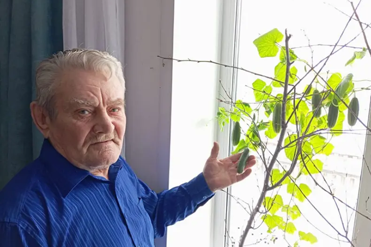 Александр Иванович сеет семена в конце октября, чаще всего это сорт «Балконный». Первые огурчики снимает уже в начале января. Они радуют его несколько месяцев.