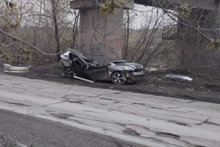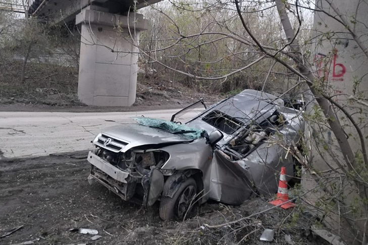 Недалеко от дома №1 на ул. Набережная водитель, по предварительной информации, потеряла контроль над транспортным средством, врезавшись в опору железнодорожного моста.