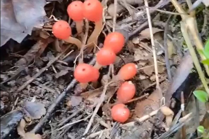 Жителю Новосибирска Ринату Султанову посчастливилось встретить в березовой роще «инопланетный гриб» — микростому вытянутую. Это ярко-красный гриб необычной формы, напоминающей цветок.