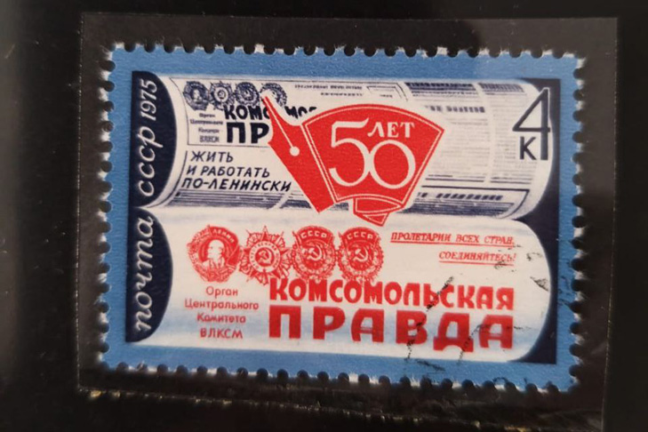 — Первая марка, посвященная «Комсомольской правде» и именно ее юбилею, появилась в 75-м году. Помимо марки был выпущен конверт с логотипом и орденами, которыми награждена газета. То же самое, что сейчас, но 50 лет назад, — продемонстрировала реликвии руководитель пресс-службы «Почты России» в Сибирском федеральном округе Галина Гордиенко.
