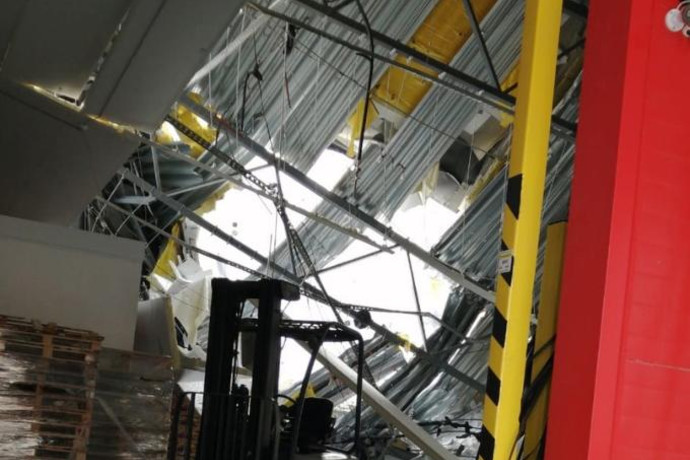На видео, размещенном в социальных сетях, запечатлен момент обрушения конструкций кровли. Они с грохотом падают на пол, поднимая клубы пыли.