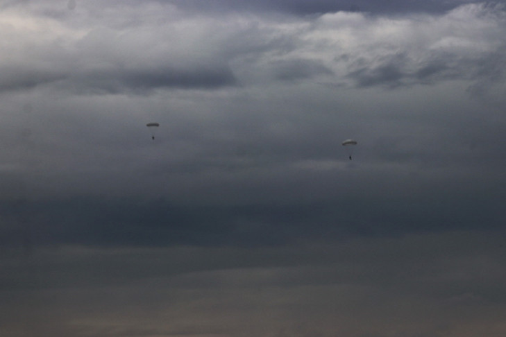 Курсанты НВВКУ десантировались с вертолетов Ми-8 АМТШ «Терминатор» используя парашюты Д-10 с высоты 800 метров. Задача будущих разведчиков была следующая — приземлиться в указанном месте и скрытно подобраться к противнику.
