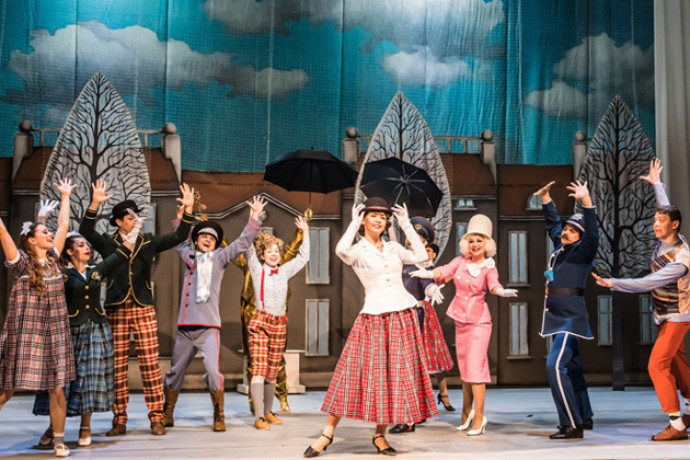 В Новосибирск Мэри Поппинс спустилась на своем зонтике впервые. Художник-постановщик Елена Вершинина создала для мюзикла яркие, почти мультипликационные и в то же время очень стильные декорации. А режиссером и хореографом-постановщиком выступил Гали Абайдулов, которого наш зритель знает по вполне успешным спектаклям НМТ «Одиссея капитана Блада» и «Вий». История, рассказанная Памелой Трэверс, в его интерпретации — это мир, полный мечтаний, волшебства, ярких игрушек — короче, всего того, что так любят дети. А взрослые здесь — тоже дети, только большие, поэтому и их следует воспитывать «залетной» няне (ее играют по очереди Валентина Воронина и Алина Шайхеева). Постановка Новосибирского музыкального театра возвращает зрителя в детство с мечтами о том, что где-то действительно есть волшебная няня, которая знает, как нам всем жить в этом все-таки совсем не детском мире.