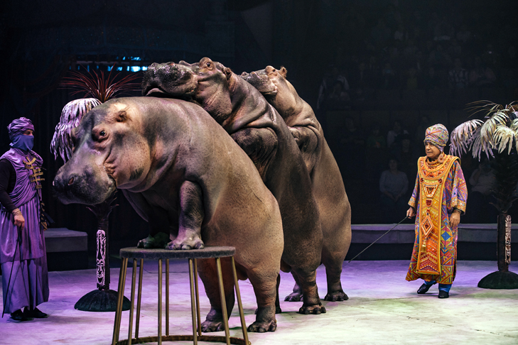 – Этот аттракцион создан легендарным дрессировщиком, народным артистом России — Тофиком Ахундовым — легендой советского цирка. Бегемоты — очень сложные и опасные животные. И то, что наши бегемоты делают в манеже — аналогов этому в мире нет. Это уникальный аттракцион, – рассказывает художественный руководитель продюсерского центра «Королевский цирк».