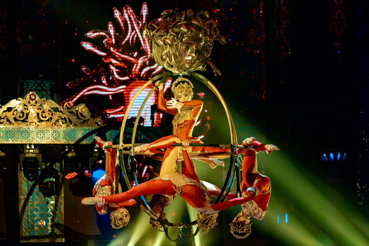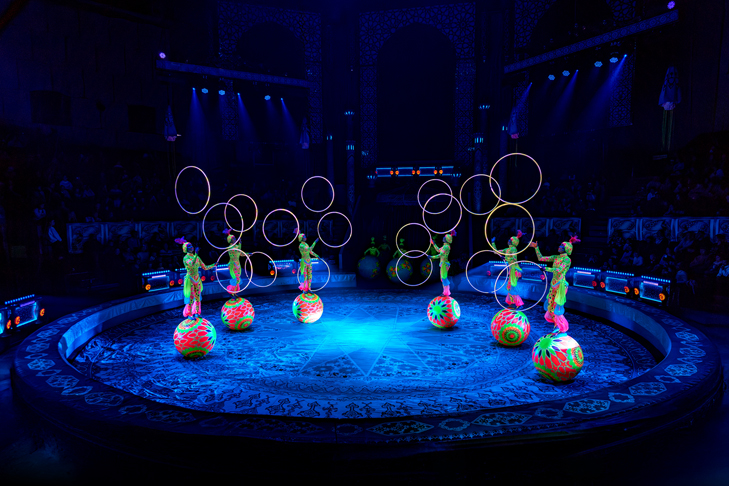 – В настоящем большом цирке должны быть большие масштабные профессиональные номера. Групповые номера, дрессура животных, аттракционы — то, что мы стараемся делать. Но уже подача должна быть современной. И при этом должна быть сохранена традиция цирка. Например, в этом спектакле есть и воздушные гимнасты, и акробаты, и дрессировщики, и оригинальные жанры. Один из таких — уникальный номер выпускниц ГУЦЭИ жонглеров-эквилибристок хула-хупами на шарах. Этот номер — сплетение жанров — жонглирование, эквилибр, воздушная гимнастика — но при этом он представлен в современной подаче, — объясняет Гия Эрадзе.
