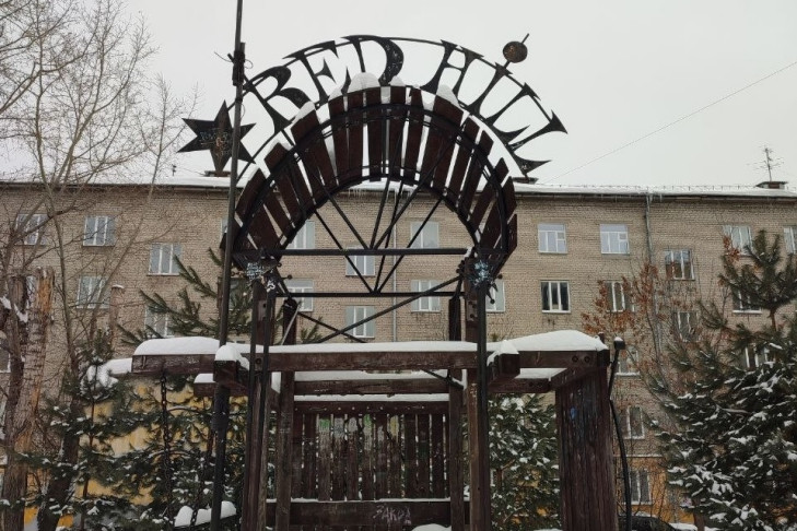 Композицию «Red Hill» создали резиденты мастерской знаменитого скульптора Геннадия Арбатского, который украсил множество дворов «Красной горки» в Новосибирске. Это одна из немногих работ Арбатского, выполненная с использованием дерева.