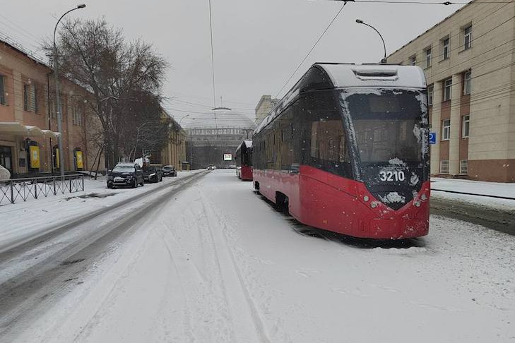 Обильный снегопад парализовал движение трамваев в центре Новосибирска