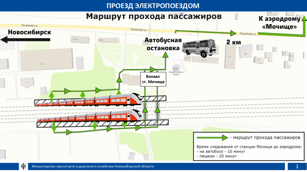 Из Новосибирской области до станции Мочище организованы транзитные маршруты поездов с Южного, Западного, Кузбасского и Жеребцовского направлений, а также продлены маршруты Городской железной дороги и с Восточного направления. Время стоянки/пересадки составит от двух минут.