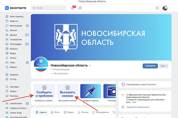 - Правительство Новосибирской области: https://vk.com/nso