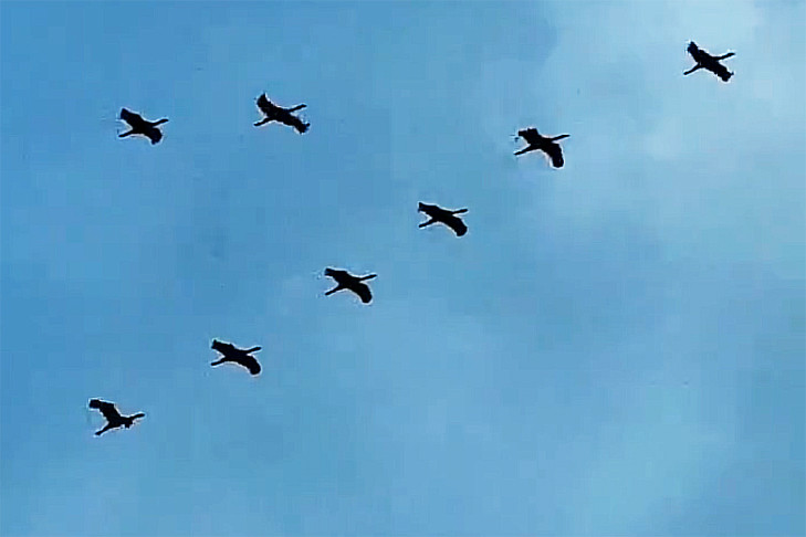 Как сообщает издание «Краснозёрская новь», с наступлением тепла пернатые начали возвращаться после долгой зимы. Местные жители запечатлели на видео журавлиный косяк, пролетающий над селом Колыбелька.