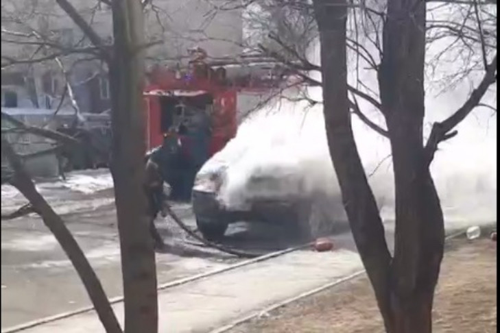 Автомобиль Kia Sorento вспыхнул на улице Высоцкого. На пожар реагировали спасатели МЧС, но спасти автомобиль не удалось, транспорт выгорел полностью.