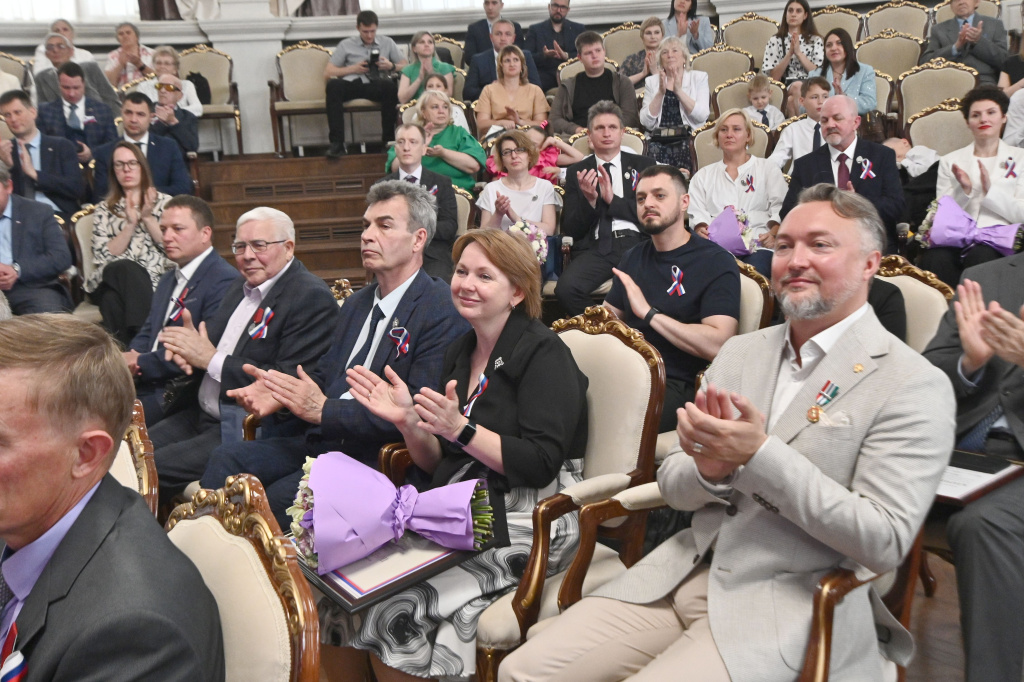 «Хочу от имени всех депутатов Законодательного Собрания поздравить вас со столь достойными наградами – федеральными и областными. Сегодня в этом зале люди разных поколений, разных профессий, наши воины, представители оборонной промышленности. Эти награды – награды вас, и ваших коллективов. Поэтому передайте всем людям, с которыми вы работаете, своим родственникам, что награды это коллективные. Никогда человек один не заработает – это коллектив, это люди, которые вокруг вас. Я поздравляю вас с вашими достойными наградами. Желаю вам счастья, успехов! С наступающим Днём России! И, конечно, всем нам победы!», – отметил Андрей Шимкив.