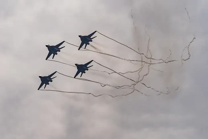 В небо над Новосибирском поднимались как спортивные так и боевые самолёты МИГ 29 и СУ 34 .