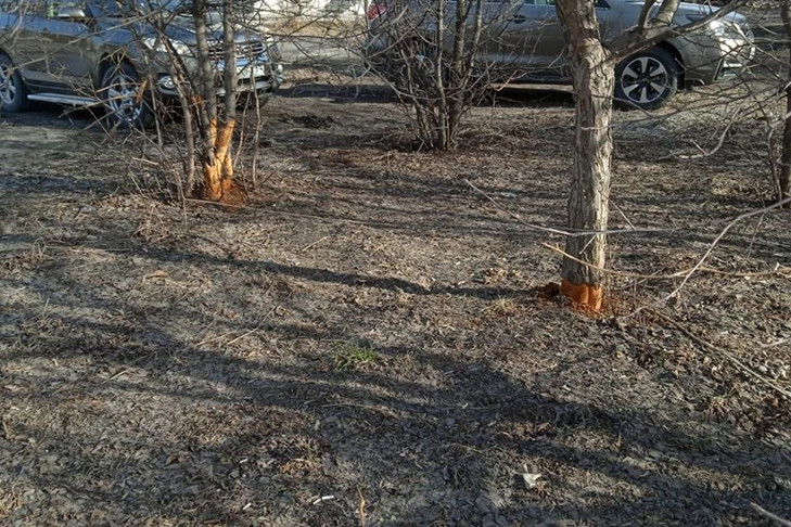 Поврежденные яблони заметны издалека. Биолог Алексей Яновский обратил внимание на деревья, когда проезжал на общественном транспорте мимо сквера. Увиденную картину ученый назвал кошмаром для городских специалистов по озеленению.