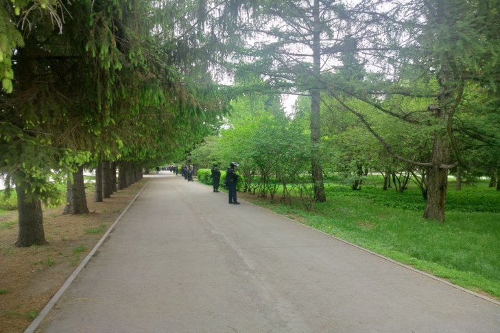 Цепь вооруженных полицейских в касках окружила по периметру сквер Монумента Славы. С самого утра проход через сквер закрыт. Пешеходов отправляют в обход по улицам Пархоменко и Плахотного. Оцепление установлено и на центральной аллее сквера. Как заявили в оперштабе региона, территорию закрыли с 8.30 до 13.30. Частичные ограничения действуют и на улицах Костычева, Плахотного и Пархоменко.
