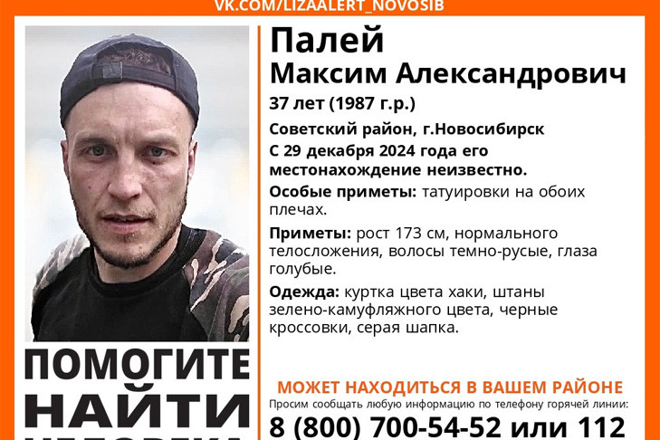 В поисковом отряде «Лиза Алерт» рассказали, что 29 декабря мужчина из Бердска отправился в Академгородок и пропал. На связь с родными и друзьями 37-летний сибиряк не выходит. СМИ сообщают, что дома Максима ждет беременная супруга.