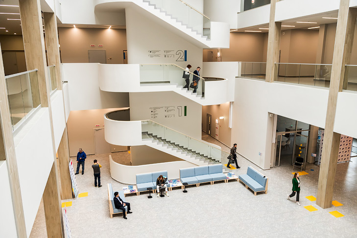 Площадь нового университетского корпуса порядка 16 тысяч квадратных метров – это самое большое по объему здание второй очереди кампуса. Научный центр института медицины и медтехнологий и научно-исследовательский корпус НГУ, которые откроют в следующем году, будут немного меньше.