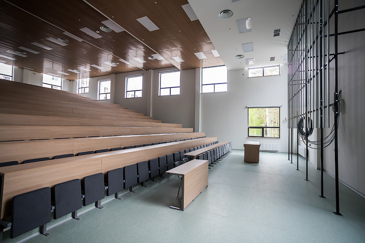 «Данный корпус соединен с учебным корпусом НГУ переходом – студенты и преподаватели смогут перемещаться по всему этому пространству, не выходя на улицу. Одна из гордостей корпуса поточных аудиторий – аудитория на 400 человек. Корпус поточных аудиторий возвели за 1,5 года. Еще два корпуса планируем завершить в начале 2026 года и открыть для образовательных мероприятий», – рассказала руководитель Дирекции по строительству уникальных объектов ППК «Единый заказчик» Наталья Зарубина.