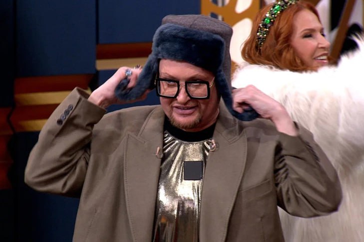 В эфире программы Шура показал часть гардероба 90-х лет от знаменитой шапки-ушанки и до просвечивающего в свете софитов костюма.