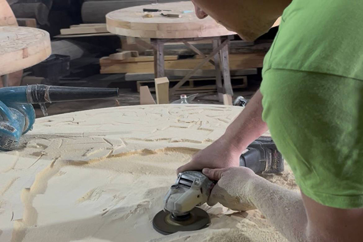 Умельцы приступили к работам 12 июня, хотя подготовка шла полным ходом задолго до этого. Чтобы не отрываться от творческого процесса, мастера ночуют и обедают прямо на территории фестиваля, полностью погруженные в атмосферу искусства.