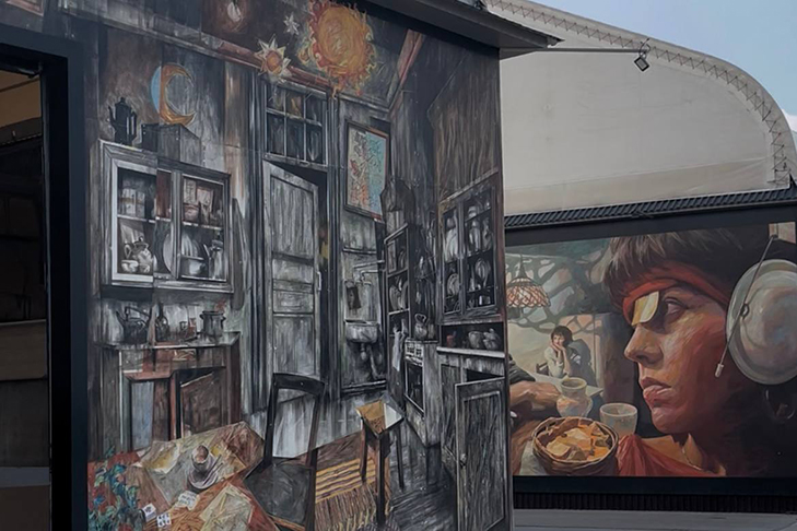 Здесь можно увидеть не только искусно выполненные деревянные скульптуры, но и яркие витражи, впечатляющие металлические фигуры и стрит-арт, муралы на стенах ангаров, посвященные жизни и творчеству культового рок-музыканта.