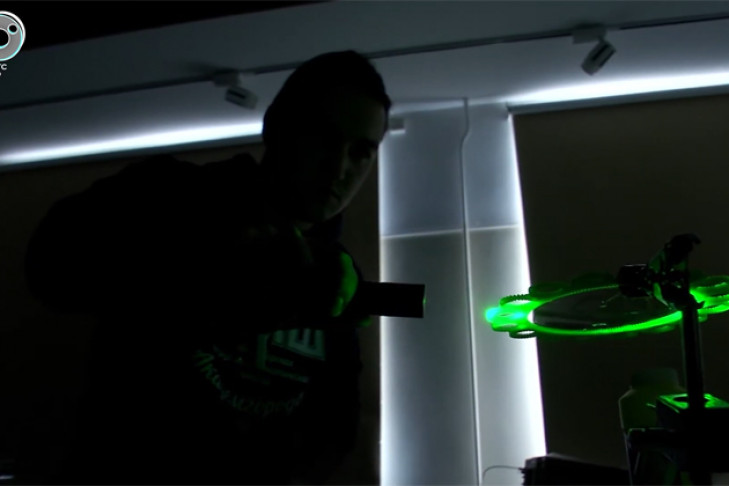 Никита Шаров устанавливает похожий на большую ромашку круг – по уровню, чтобы горизонтально было. Потом по принципу, который знаком любому ребенку, надувает мыльную пленку. И уже на нее идет свет из лазерного источника. Задача – понять, почему из одного луча образуются несколько, это похоже на нарисованное дерево. Ответ – из-за неоднородности пленки свет рассеивается неравномерно.