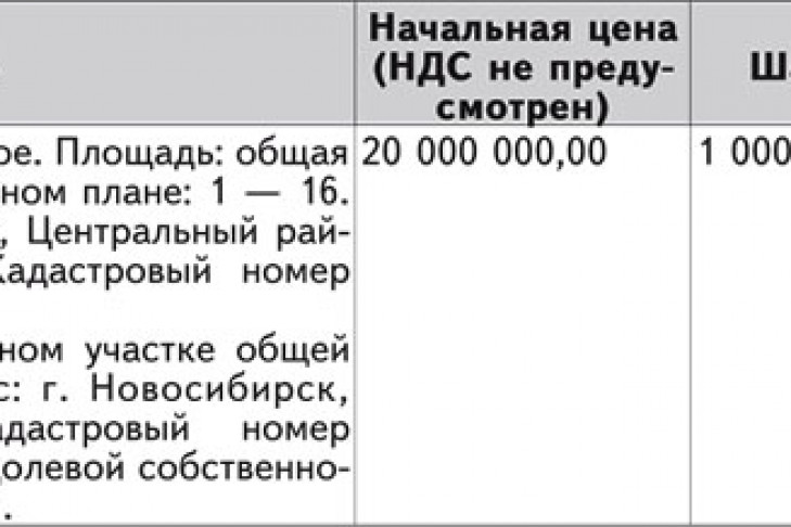 Организатор торгов — конкурсный управляющий Общества с ограниченной ответственностью «Гестор» Лебедев Сергей Викторович (ИНН 540785176750, СНИЛС 013-119-720-00) — отменяет торги, назначенные на 28.11.2013 г., по продаже имущества ООО «Гестор» (630099, г. Новосибирск, ул. Орджоникидзе, 33, ИНН 5406157361, ОГРН 1035402466252, дело о банкротстве № А45-25635/2012, публикация № 54030151706 в газете «Коммерсантъ» № 192 от 19.10.2013 г.) и сообщает о назначении на 05.12.2013 в 12:00 (здесь и далее указано московское время) в электронной форме на электронной площадке «Аукционы Сибири» (www.ausib.ru) открытых торгов с открытой формой подачи предложений о цене по продаже следующего имущества должника - см. Таблицу 1