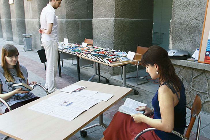На этой неделе возле Новосибирской государственной областной научной библиотеки начал работать читальный зал под открытым небом. Любой горожанин теперь может насладиться чтением книг, газет или журналов на свежем воздухе. До этого в мегаполисе уже были попытки на летнее время создать библиотеку на улице.