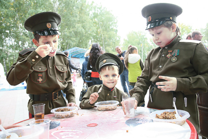 — Неси сюда всю гречку, — командует главная по кухне казачка в нарядном костюме и сосредоточенно вслух считает, сколько уже насыпала крупы.