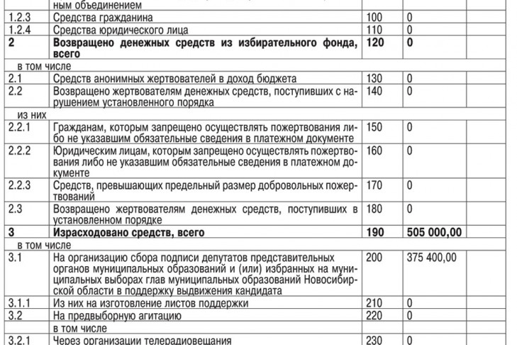 Итоговый финансовый отчет о поступлении и расходовании средств избирательного фонда кандидата на должность губернатора Новосибирской области СТАРИКОВА Ивана Валентиновича