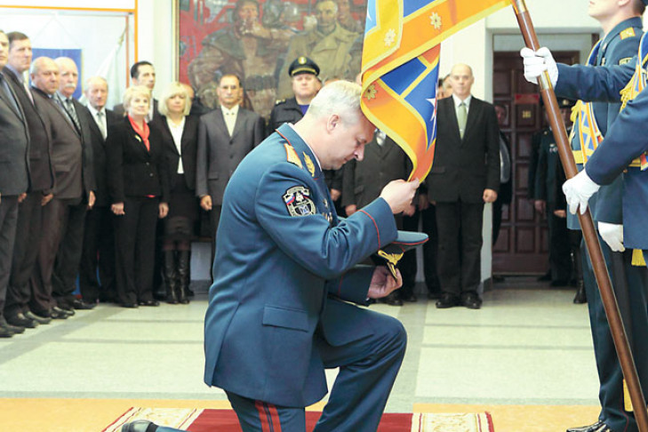 Начальник Главного управления МЧС по Новосибирской области Анатолий Кузнецов оставил свой пост, перейдя на службу в федеральное министерство. В минувший четверг, перед отъездом в Москву, генерал-майор попрощался со знаменем своего ведомства.