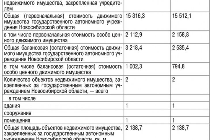 ОТЧЕТ об использовании закрепленного за государственным автономным учреждением Новосибирской области имущества - см. таблицу 3